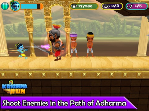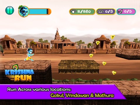 Download this free and best Krishna Game yet Krishna Run as it redefines action & adventure mobile game. Jump, slide, dodge obstacles and shoot enemies in your way to kill Kansa. Collect gems and perform all moral tasks for a high score with three peacock feathers.