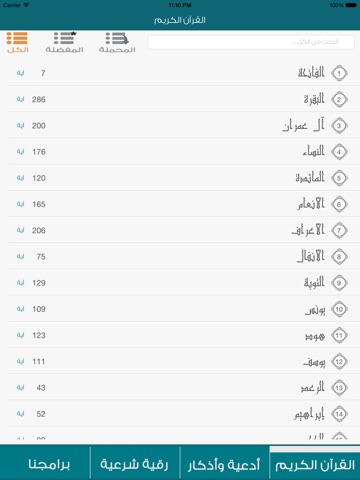 إمكانية تحميل اي سورة على الجهاز والاستماع لها بدون الاتصال بالانترنت.