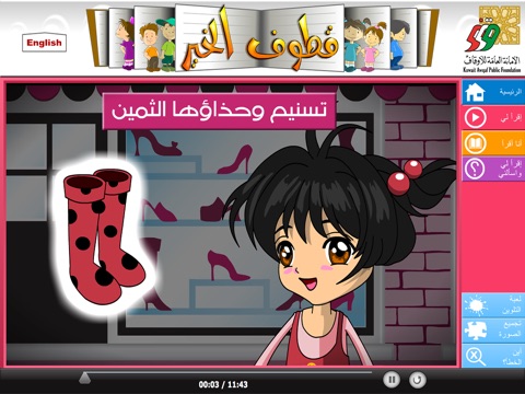 • الطريقة الثانية (أنا أقرأ): بغرض مساعدة الطفل على تنمية هذه المهارة القراءة تعتمد هذه الطريقة على قصة رسومية تحتوي النص المكتوب ومتضمنة بعض المؤثرات الصوتية أثناء السرد، ومفاتيح للتنقل بين صفحات القصة.