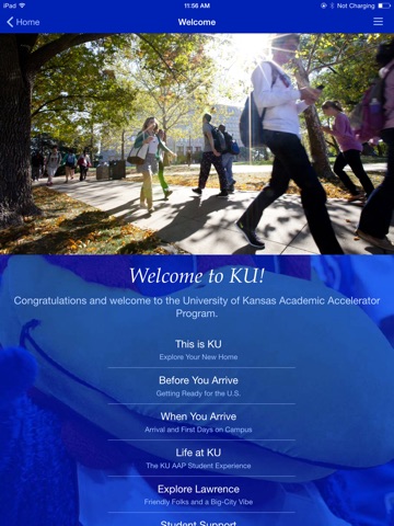 Stay connected to the KU Academic Accelerator Program! Learn about KU AAP events, find important forms, access a map, and find answers to all your questions, all on your mobile device. The KU AAP mobile app provides convenient, instant access to helpful and useful information.