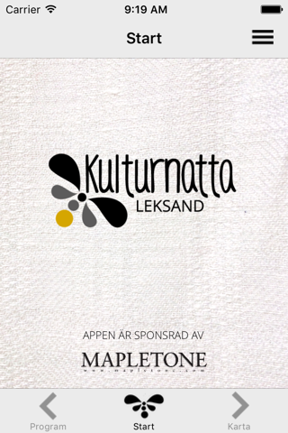 Välkommen till Kulturkalaset Leksands app, utvecklad av oss på Mapletone som en gratis tjänst till alla er besökare och utställare som kommer till Leksand på lördagen den 2:a september 2017. Vi på Mapletone hoppas att den här appen kan hjälpa dig att hitta rätt bland alla evenemang och ge dig en ännu bättre upplevelse.