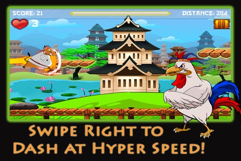 Run and jump your way through the Japanese garden, collecting ninja stars and dashing through the air. Cover as much ground as you can, but beware of the Evil Rooster!