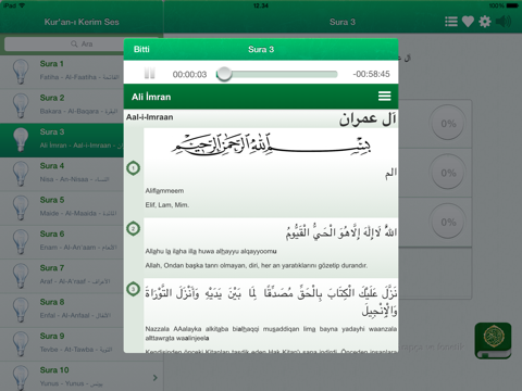 Bu uygulama size okumak ve cihazınızda Kuran-ı Kerim 114 bölümden dinlemek için yeteneği verir.