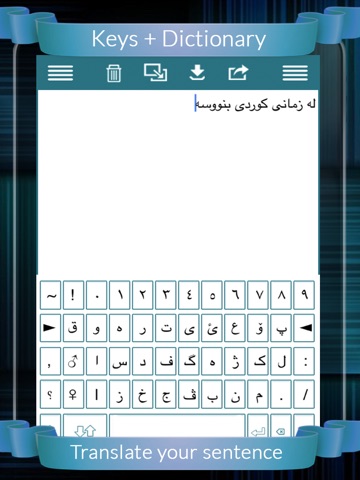 Kurdish Keys Plus Dictionary is a precious gift for those who loves to write in Kurdish & want to share in Kurdish language.Its not just Keyboard but also a Dictionary (English to Kurdish & Kurdish to English).