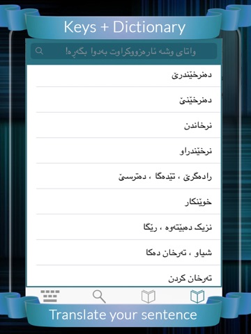 6. There is built-In Search bar in both English and Kurdish languages with Custom Kurdish+English Keyboard to find your desirable word(s).