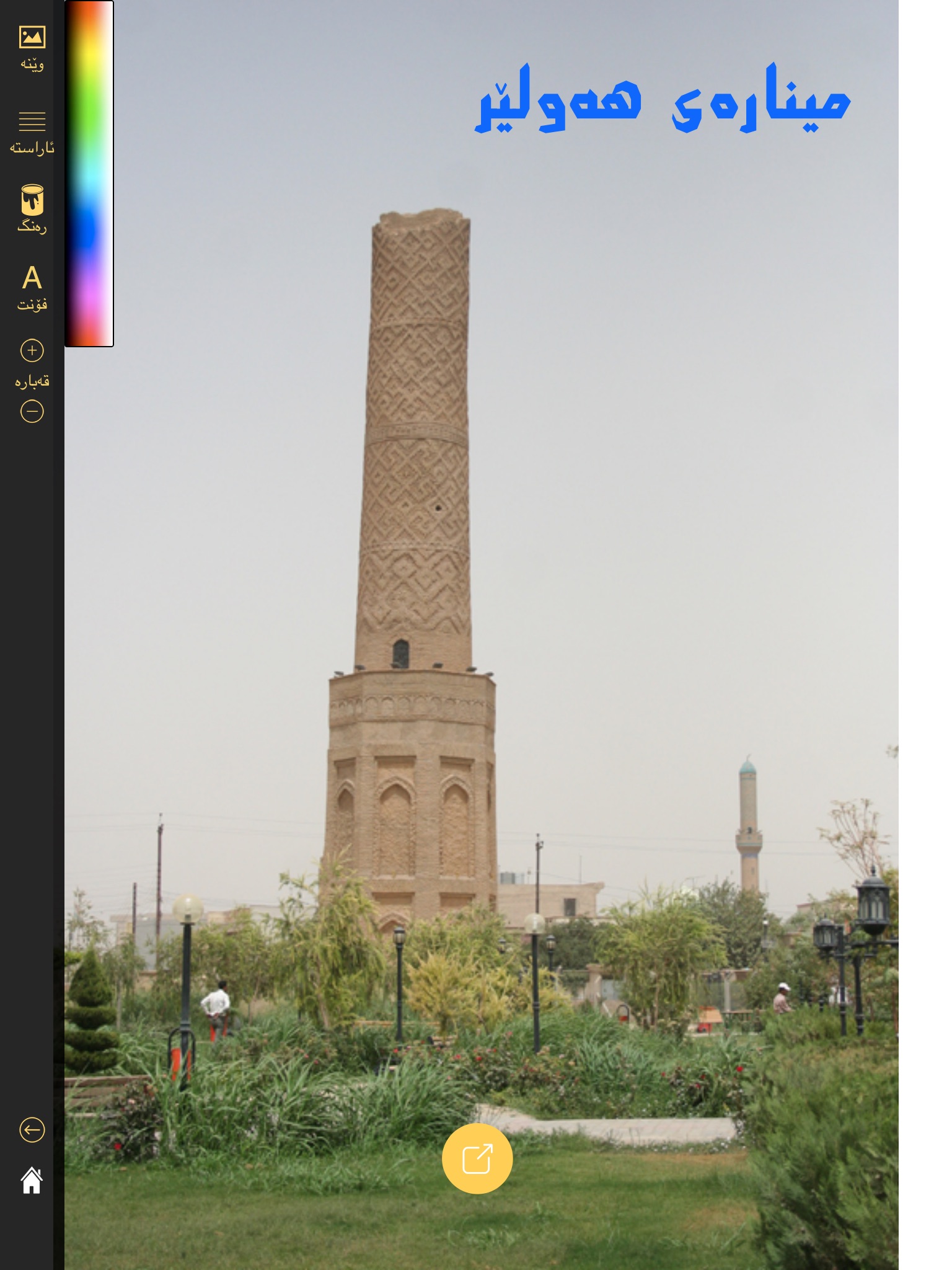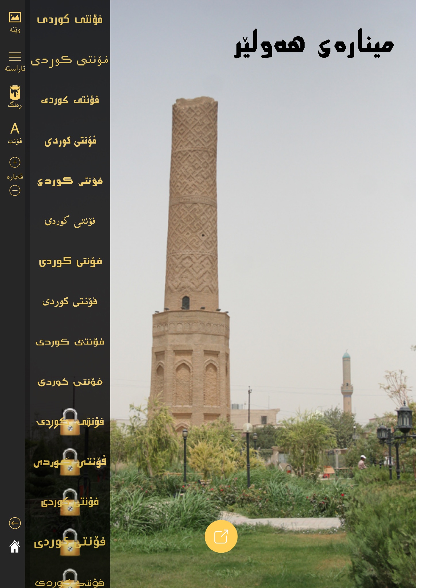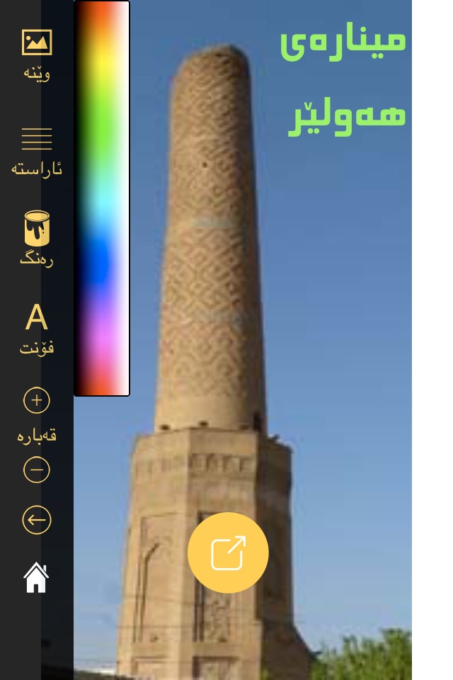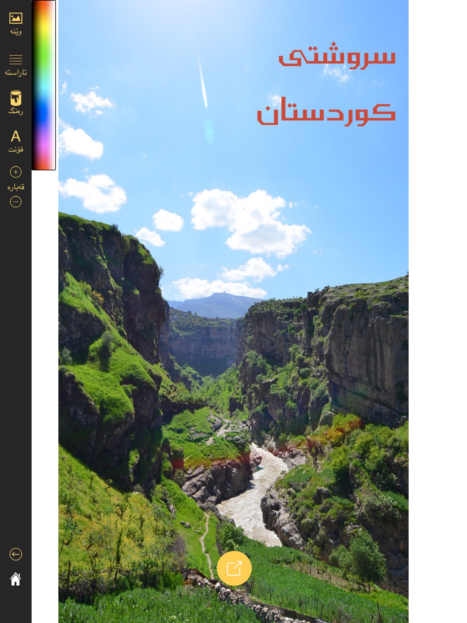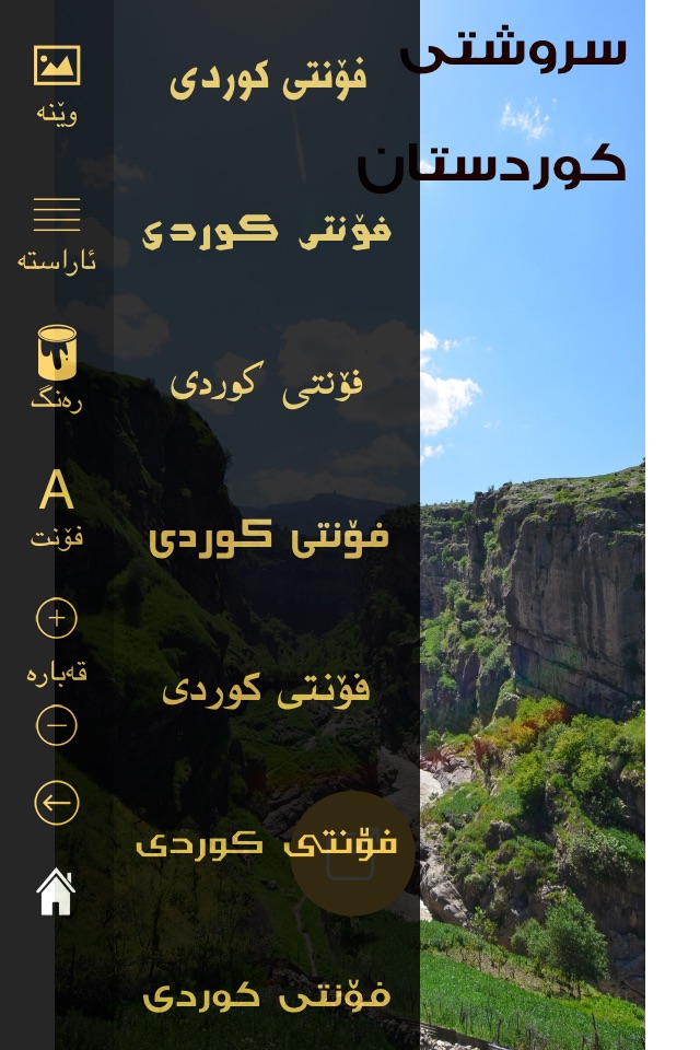 Kurdish fonts are included in this app to be included over images or white background. you can change the colour and alignment of the text and finally download the image to your device or share them on your social media channels.