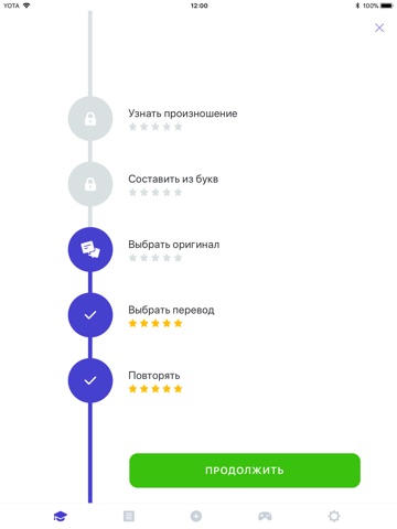 Слова можно добавлять самому или выбирать из подготовленных тем. Добавлять слова вручную просто — в Бродского встроен словарь с переводами и транскрипциями. Люди смотрят переводы интересных слов в Бродском, и слова сразу попадают в список для изучения.