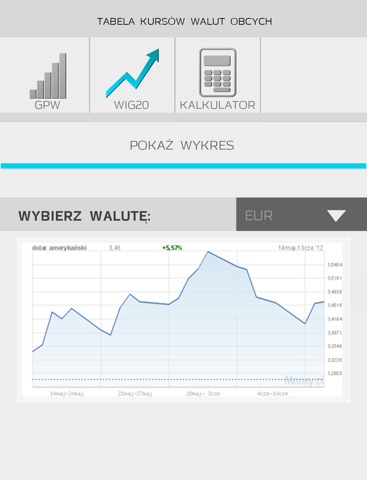 Darmowa aplikacja dzięki której w bardzo szybki i łatwy sposób sprawdzisz aktualne kursy walut Narodowego Banku Polskiego. Poznaj szczegółowe notowania interesujących cię walut: dolara, euro, franka, funta, jena a kalkulator pomoże w ich szybkim przeliczeniu. Dzięki aplikacji możesz również sprawdzić wykresy wybranych walut z ostatniego miesiąca.