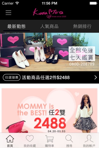 下載APP手機秒變專屬賞鞋區,用手機號碼即入會員。一指快速購物,推播掌握好康,手指縮放大圖,簡單清晰好逛。