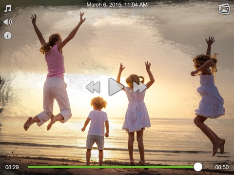 Kuvana will turn your iPad or iPhone into an attraction anytime you want to share a set of photos with your friends. Think about having your iPad on the bookshelf, displaying your wedding photos at a family gathering. Choose a mix of your favorite photos and have them run on the background, entertaining your guests at a party. Or share your latest travel photos with friends and family as a delightful, seamlessly looping presentation on your TV using AirPlay mirroring.