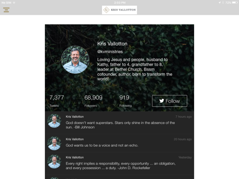 •Social - Stay connected and follow Kris through his Facebook and Twitter feeds.