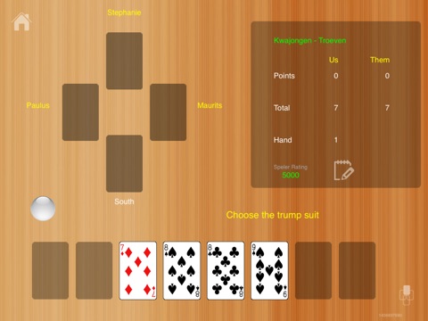 Kwajongen, also known as Couillon, Troeven or "Boompje leggen", is a simple and surprisingly addictive trick taking card game with a lot of strategic room to decide the outcome of the game.