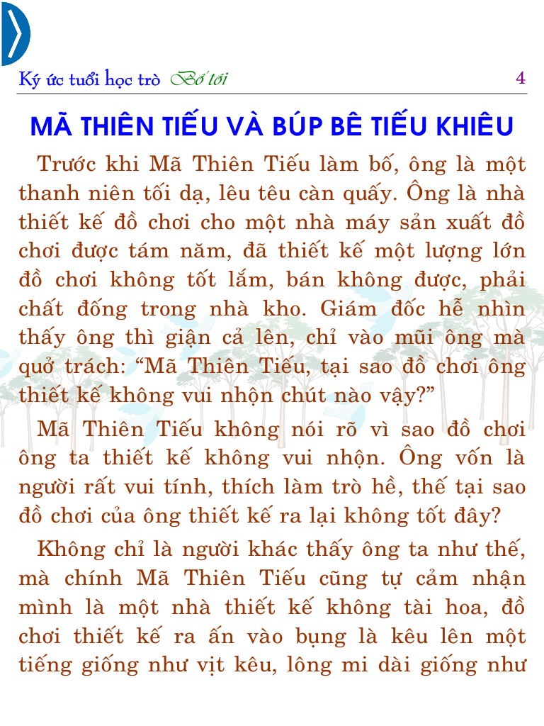 Ký ức tuổi học trò – Bố tôi (Memory of school time – The Father) là quyển sách viết về người bố. Với những câu chuyện của ông bố làm cho trẻ thích thú, có những câu chuyện làm cho người bố buồn lòng...