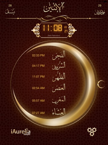 بإستخدام نظام تحديد الموقع يقوم التطبيق بعرض أوقات الصلاة (الفجر، الشروق، الظهر، العصر، المغرب، العشاء) بالاضافة لحساب الوقت المتبقي للصلاة القادمة