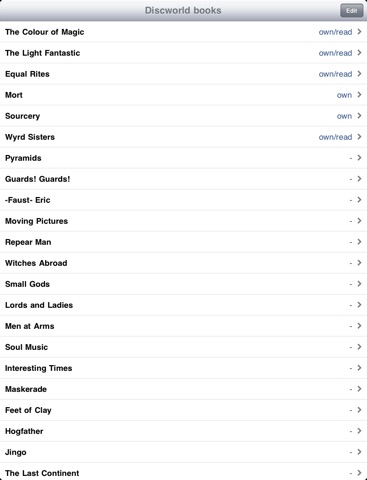 The original L-Space application was for tracking the status of the books in my Discworld collection: Which do I own, how many have I already read, which ones are still missing, and also for the Dutch language please