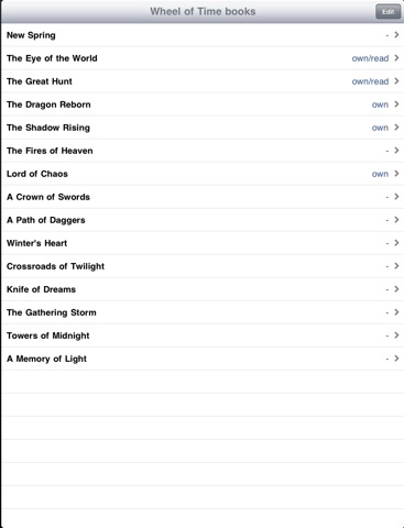 This app contains the list of books of the Wheel of Time series, written by Robert Jordan.