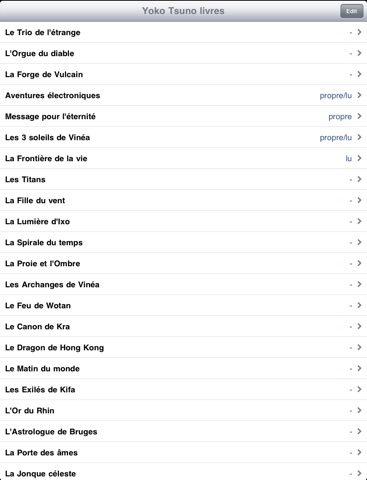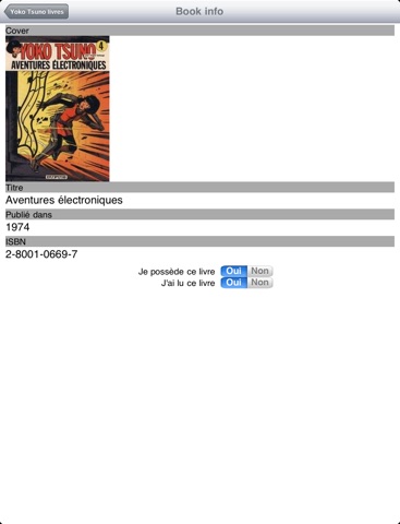 The original L-Space application was for tracking the status of the books in my Discworld collection: Which do I own, how many have I already read, which ones are still missing, and also for the Dutch language please Over time it got more and more features: Instead of only a list of books for a single series, you can tag which ones you own and which ones you have read, plus background information like the characters and themes of each of the books. Also the titles of non-English languages like Dutch, German, French, Spanish and Portuguese were added. This app contains the list of Yoko Tsuno by Roger Leloup