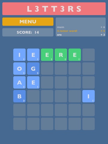 Swipe and make 3-letter words or longer to score and keep the board from filling up!