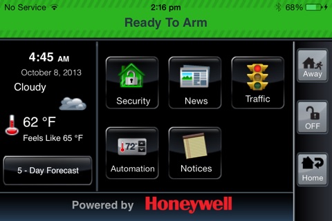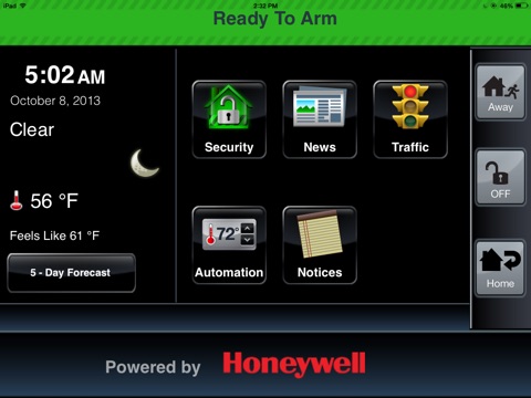 Great look on my iPad and iPhone. Operate my alarm without getting out of my chair and no waiting.