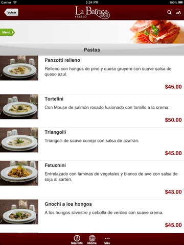 Con esta aplicación podrás ver todos los platos y precios antes de llegar a nuestro restó, conocerás las variaciones que van surgiendo en el menú