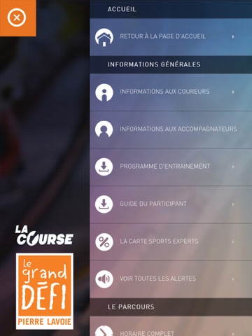 L’application La Course vous permet d’obtenir toutes les informations sur l’événement La Course du Grand défi Pierre Lavoie.