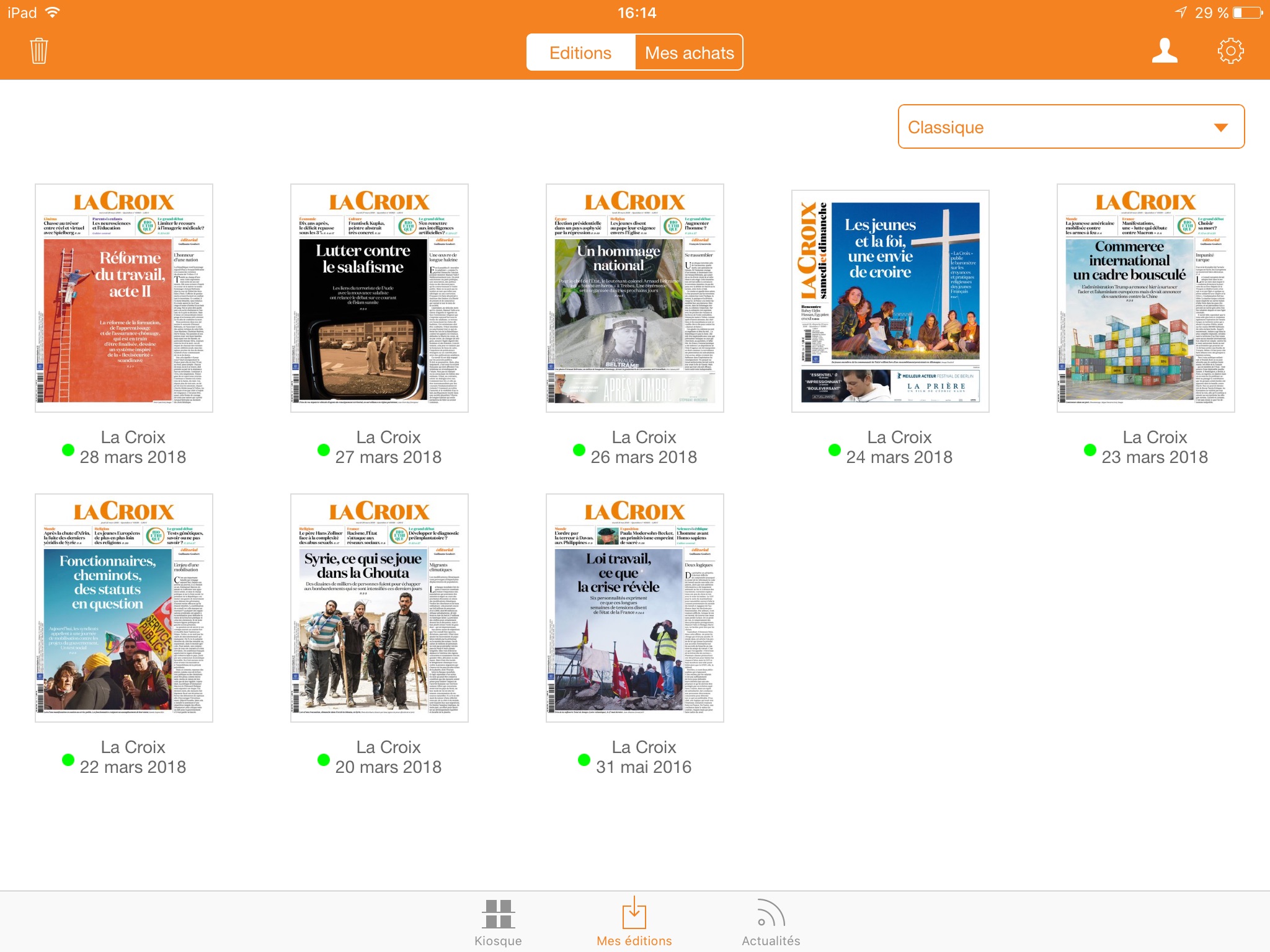 Pour profiter du journal La Croix : chaque jour une édition centrée sur lessentiel de lactualité France, Monde, Economie, Culture, Religion et Sport. La Croix laisse une large place au débat et permet un approfondissement de lactualité et sa mise en perspective.