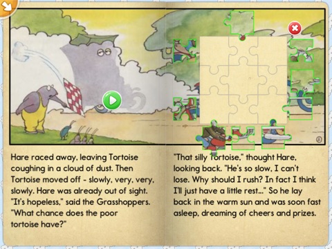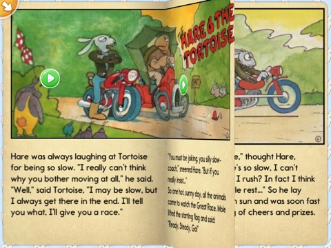 Interactive classic childrens book from Aesops Fables. Narrates the competition of the speed and pride of the hare and the slow tortoise. An emotional and unexpected final winner. Enjoy with the company of your kids, with one of the best fables in world heritage.
