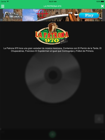 The Patron 970 is the house of Chiquibaby, El Chupacabras and El Espiderman. We play the best Mexican music and have news and information for Twin Falls, Jerome, Sun Valley, Burley and Rupert. Some artists we play: a) Gerardo Ortíz b) Caliber Fifty c) Banda MS d) Banda Los Recoditos e) Jenni Rivera f) Los Tigres del Norte g) Voice of Command i) Regulo Caro j) Vicente Fernández k) Juan Gabriel Tocamos a variety of rhythms: sierreño, ranchera, mariachi, duranguense, norteña. cumbia and band. Our format focuses on the best hits of yesterday and today. There is always a good balance between the two extremes. From Monday to Friday we offer the Tianguis al Aire at 12:20 pm. We have affiliations with GLR (W Radio) and Premier Soccer. Patron 970 is the most reliable news source in Spanish in the Magic Valley and northern Nevada. The station belongs to the radio group Lee Family Brodacasting. Download the app and enjoy extremely parent programming. If you have questions about our programming or the handling of this app, please contact us in Spanish through [email protected]. Thanks for tuning in. We look forward to serving you as you deserve.
