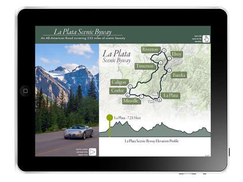 The official 2016 travel guide for the fictional town of La Plata City, CO. This app demonstrates how an interactive travel guide can be created and used to engage potential visitors by showing interactive pages of: