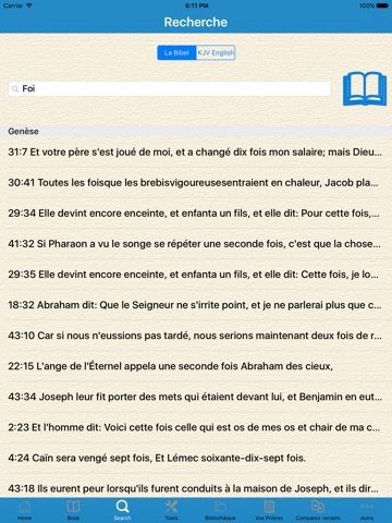 Avoir la bible prête à lire est formidable, mais parfois, nous voulons être en mesure d’étudier la bible de façon plus approfondie. Pour cette raison, notre application biblique propose différents outils pour renforcer l’étude. Vous pouvez enregistrer différents versets dans la bibliothèque de l’application, capturer vos pensées et vos méditations, ajouter des notes et des annotations et ensuite partager votre bibliothèque avec les autres. Vous pouvez souligner des versets et fouiller la bible pour différents mots clés.