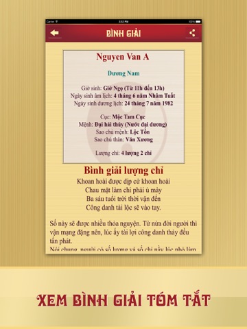 Bình giải lá số tử vi: Ứng dụng bình giải chi tiết các thông tin