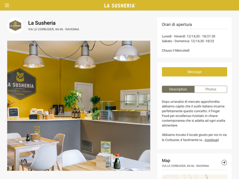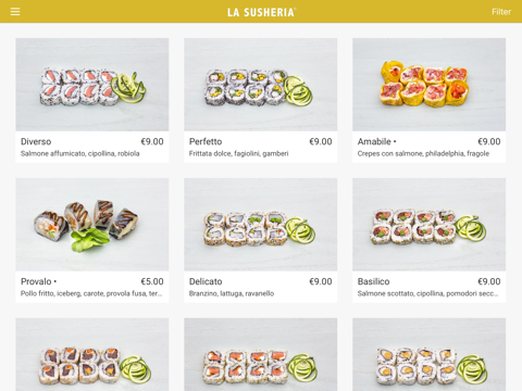 Con la nuova app della Susheria puoi consultare il menù in maniera interattiva, pratica e veloce. Le immagini curate e dettagliate ti aiuteranno a scegliere i piatti che preferisci!