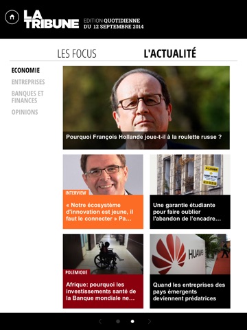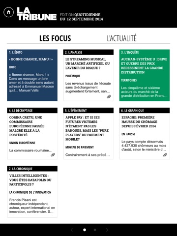 Lapplication est bien réalisée, mais la navigation nest pas assez intuitive (cf Le Point, un modèle du genre). Sinon, on peut acheter les numéros à lunité, ou bien sabonner à la semaine ou au mois, cest très souple. Sur le contenu, pas de souci, cest la Tribune, cest du sérieux.