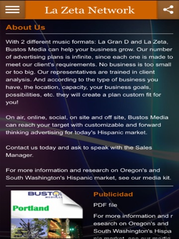 With 2 different music formats: La Gran D and La Zeta, Bustos Media can help your business grow. Our number of advertising plans is infinite, since each one is made to meet our clients requirements. No business is too small or too big. Our representatives are trained in client analysis. And according to the type of business you have, the location, capacity, your business goals, possibilities, etc. they will create a plan custom fit for you!