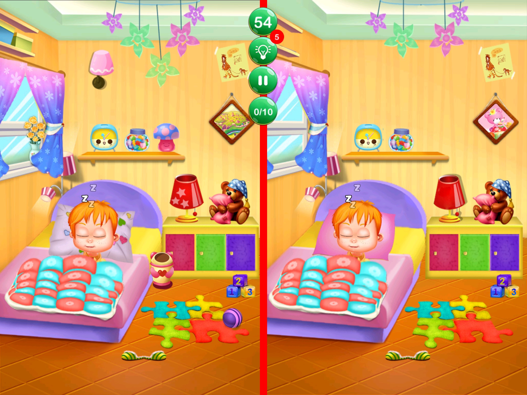 -كل مرحلة تحتوي على 10 فوارق يجب عليك اكتشفها للانتقال الى المرحلة التالي.