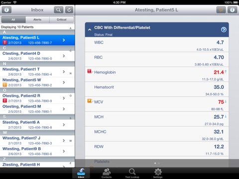 • Quick, at-a-glance Inbox summary list of your patients’ laboratory results