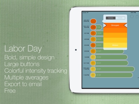 Designed by a father-to-be, Labor Day is a contraction timer focused on clarity and visual simplicity. Featuring big, easy-to-read graphs, because you want to SEE contractions getting longer and the intervals getting shorter.
