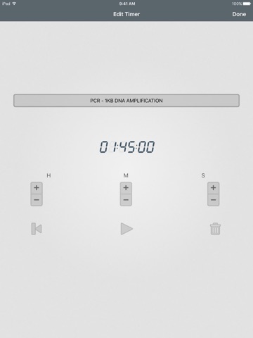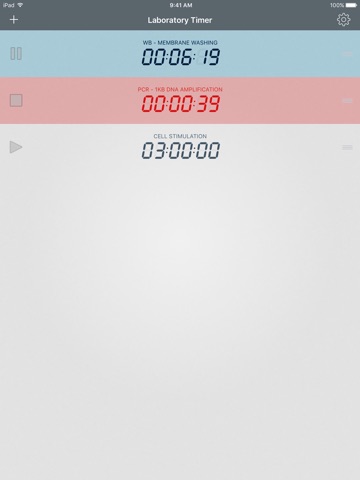 To use the Laboratory Timer app just pull down to add a new timer, set the duration and press “Play”.