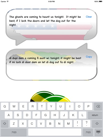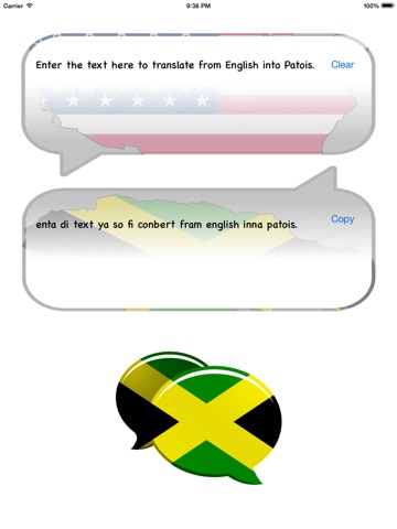 Labrish "chit chat" translates basic English words and phrases into Jamaican Patois or Jamaican Creole. Its accurate enough to make it fun, though its not perfect. You can also share translated phrases with friends via text message or email.
