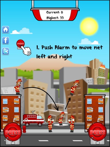 But wait! Kyle has climbed onto the wrong building and now must travel from building to building to reach the fire. Can he do it? Can you help him? How many buildings must he traverse? Will the ladder reach to the next building? Sometimes he will need help by using a fireman’s net to bounce to the next building. Kyle needs your help!