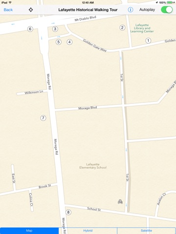 The Lafayette Historical Walking Tour is a self-guided tour of historic sites in Lafayette, California. It includes text, current and past images, and audio. Explore the history of this town in a way you never could before! Slide between the past and present using slider images at various locations! The app contains a map of all the historical locations and uses GPS to guide the user on a tour.