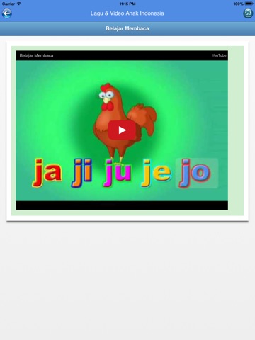 Koleksi Lagu & Video untuk anak-anak Indonesia yang dikumpulkan oleh aplikasi Aplikasi Lagu & Video Anak Indonesia adalah melalui sumber Youtube dan merupakan koleksi dari para pengguna Youtube.