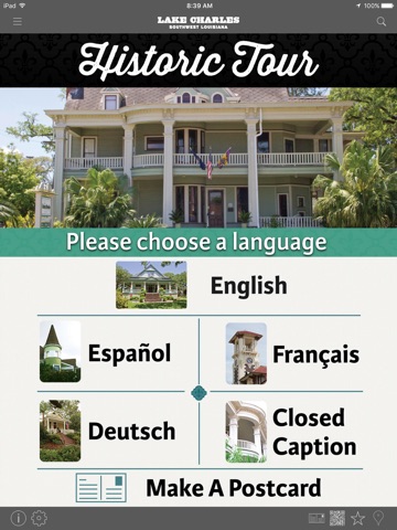 The Lake Charles Historic Tour App is available in multiple languages including English, French, Spanish, German and closed-captioning.