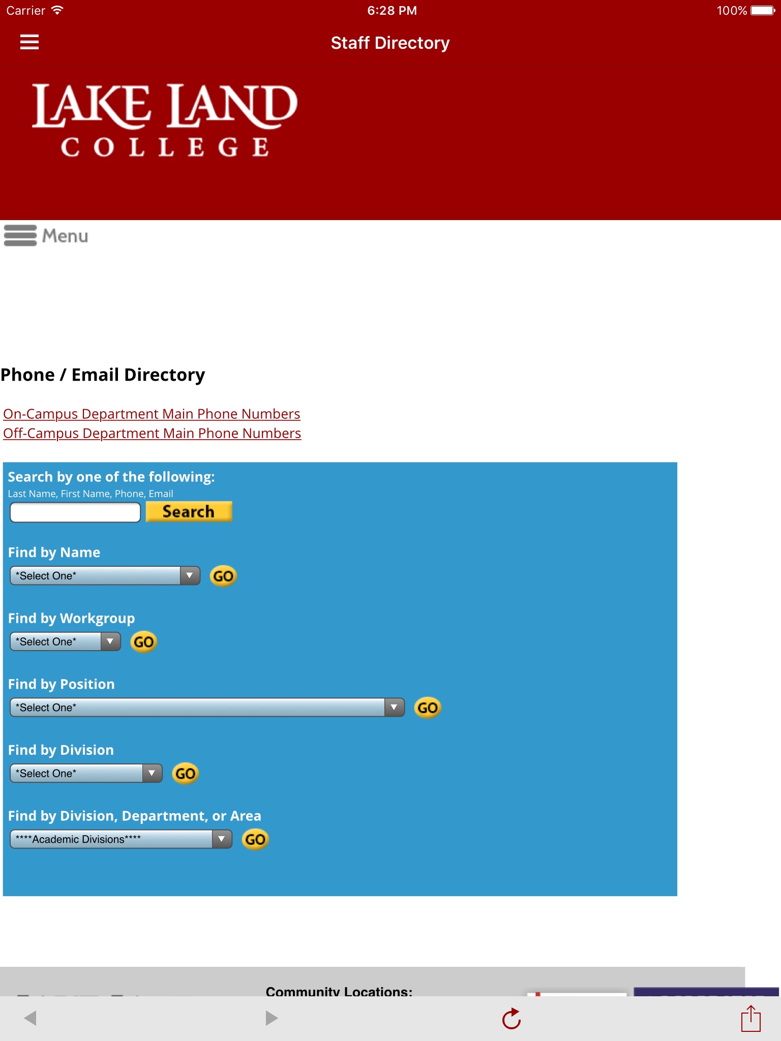 Quick and easy access to the faculty and staff people directory, campus info, campus maps, news, events, and more.