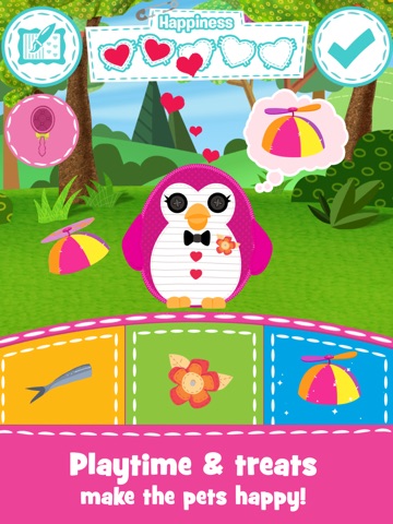 Even after you’ve healed sore throats, fixed achy tummies, mended owies and more, these pets still need a little cheering up! All you have to do is give the adorable pets a couple of their favorite treats and some special pet playtime to perk them up and fill their happiness meters! Can you fill all five hearts and make your friend’s pets happy once again?
