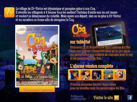 This free alarm clock offers animated mornings in The Rooster of St-Victor’s universe.