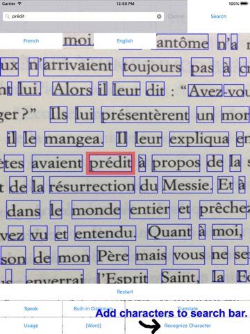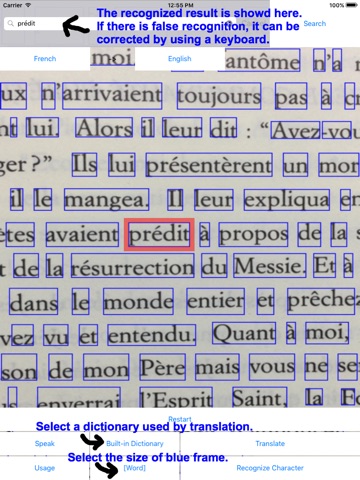 - This app can detect regions of words in the camera, and each word is surrounded with a blue frame.
