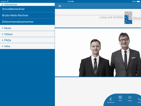 Mit unserer App für iPhone, iPad und iPod touch wollen wir Ihnen die absolute Mobilität bieten. Nach dem Download unserer App stehen Ihnen umfangreiche Informationen und unsere praktischen Onlinerechner auch mobil zur Verfügung. Wir halten Sie über Neuheiten aus unserer Kanzlei und über Steuernews auf dem Laufenden. So bleiben Sie – auch von unterwegs – am Puls der Zeit!