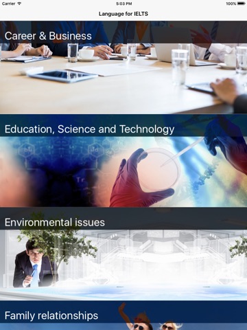 This series of virtual collocation flash cards can be experienced as a slide show, or even select your favorites individually. Each and every collocation found in your new app was chosen based on commonly used IELTS exam topics (career, education, environment, culture, family, etc).