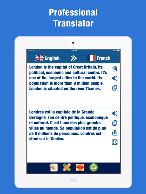 Free Language Translator in 35 languages! There are no in-app purchases or functionality limits. Everything is FREE.